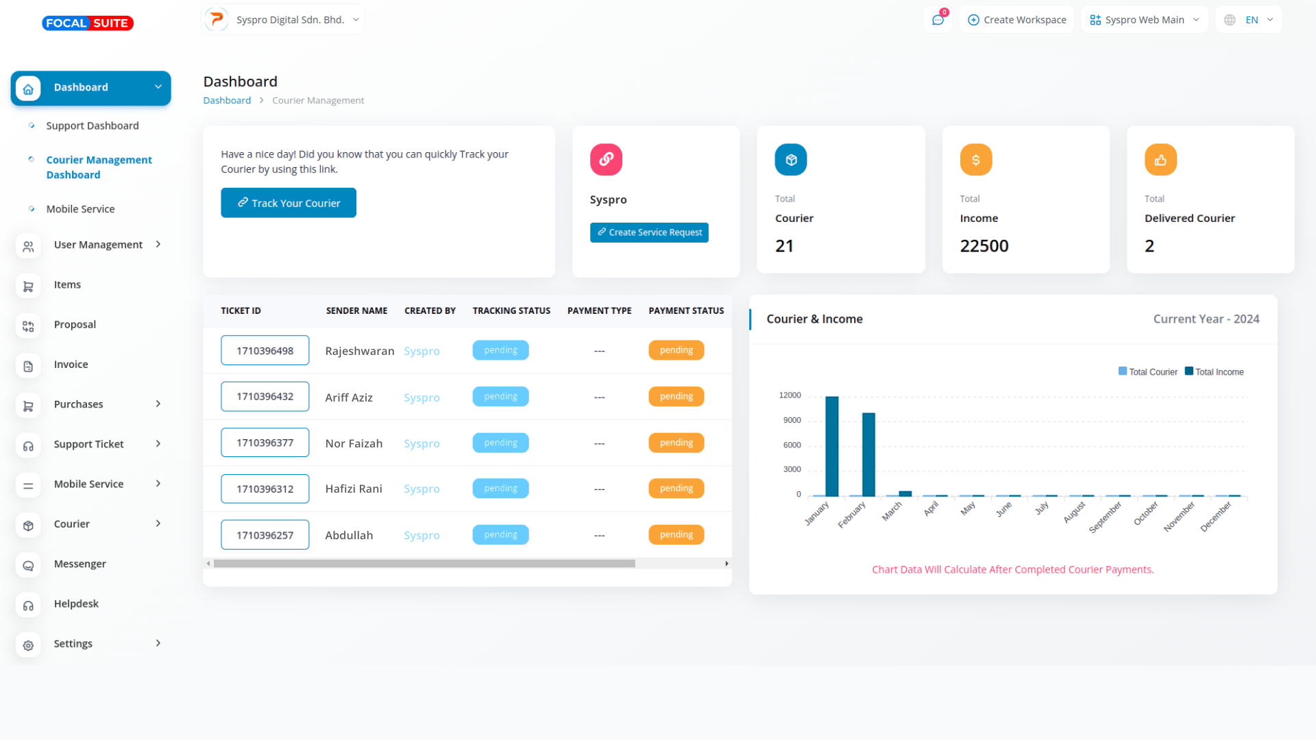 Experience seamless deliveries with the Courier Management System in Focal Suite. This dedicated tool ensures efficient order processing, real-time parcel tracking, and delivers strategic insights through powerful reporting features. Elevate your courier operations with this all-in-one solution.