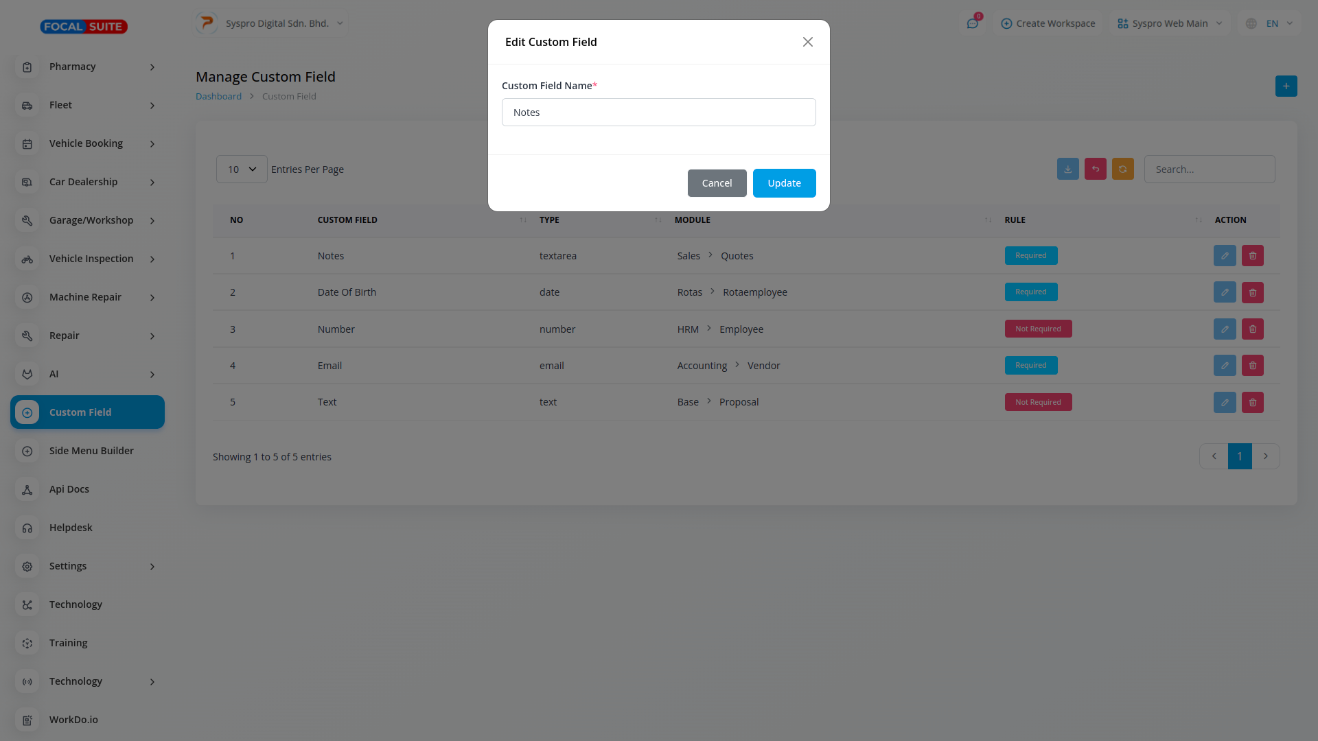 Simply select a field from the list and choose the appropriate type. There are five available field types: Text, Date, Email, Number, and Textarea. The custom fields will be displayed effortlessly.