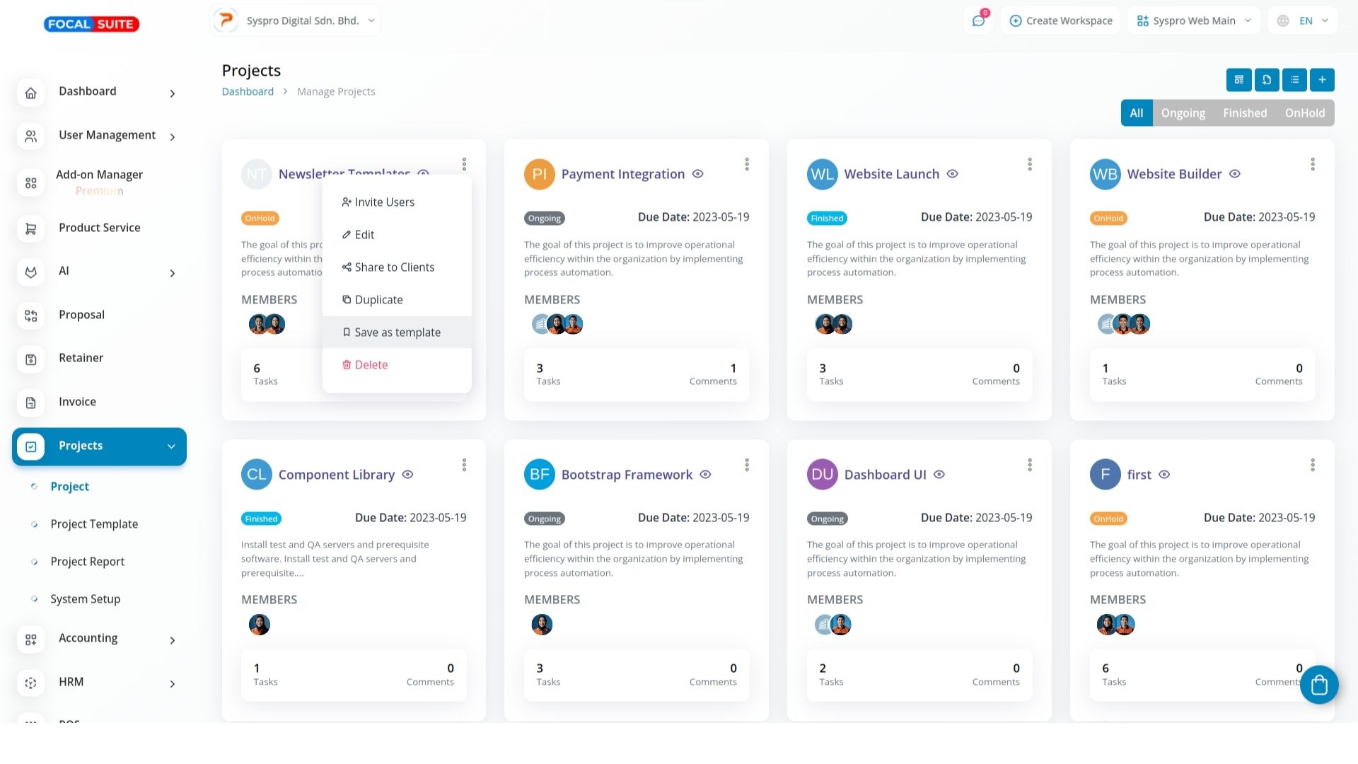 This powerful feature is designed to streamline your project management process by enabling you to create, save, and easily convert project templates into active projects.