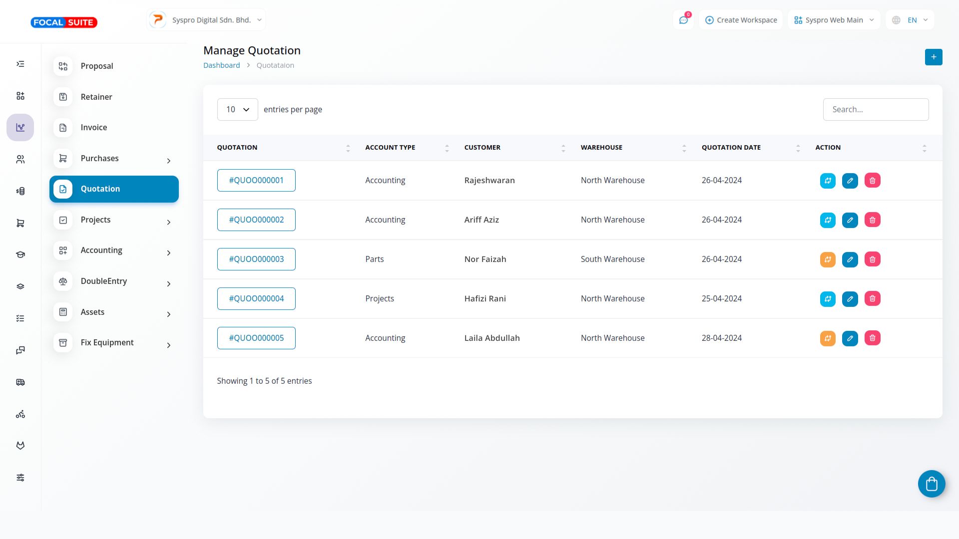 Quotation management is essential for any business, impacting customer perception, revenue generation, and overall efficiency. With Focal Suite, you can transform your quotation process, making the creation, tracking, and conversion of quotes into invoices seamless. Our comprehensive quotation module includes a variety of features designed to streamline your workflow and boost productivity.